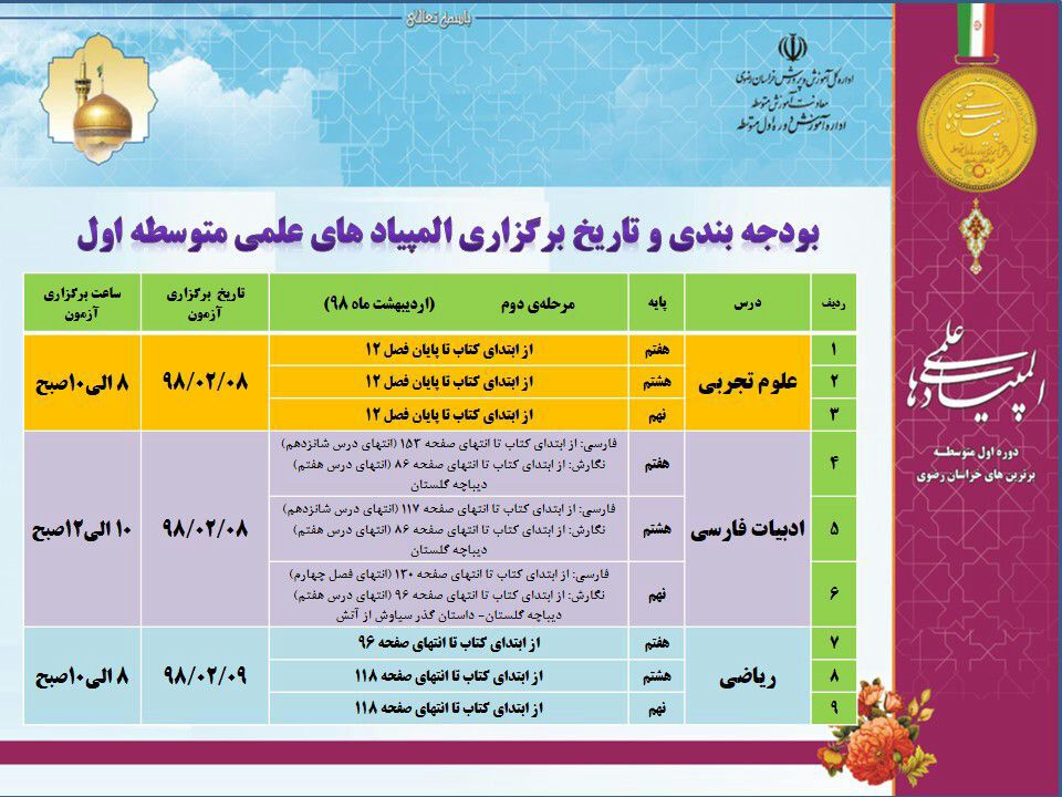 بودجه بندی آزمون سنجش پایه نهم (مرحله دوم)